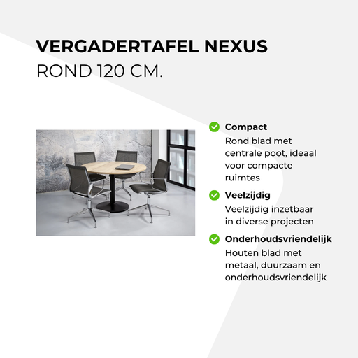 View full detailsDeze ronde tafel is zo flexibel als jouw planning! Of je nu gaat voor de strak zwarte design, deze ronde kruispoot tafel met melamineblad is compac...