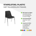 Czarne plastikowe krzesło sztaplowane z aluminiową ramą