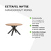 - Stevig en krasbestendig: Het ronde mangohouten blad is krasbestendig en kan tegen een stootje, gecombineerd met een zwart stalen frame.